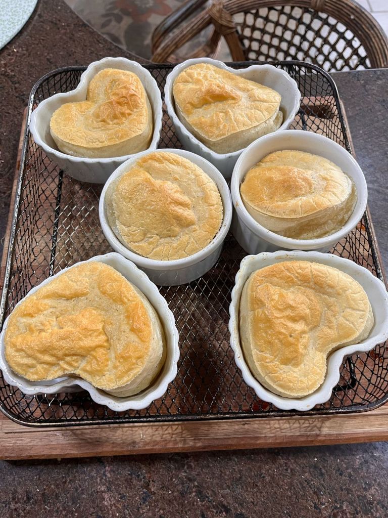 Você pode tanto: Com uma concha despejar a mistura formando um círculo na forma e levar para assar (ficará parecendo rosca de vento) ou colocar em pequenas forminhas untadas com óleo e assar por 8 minutos até ficarem douradas. Na imagem estou utilizando os ramequin da Ceraflame além de muito fofos em formato de coração, as cerâmicas são totalmente atóxicas, uma ótima pedida para o nosso corpo!