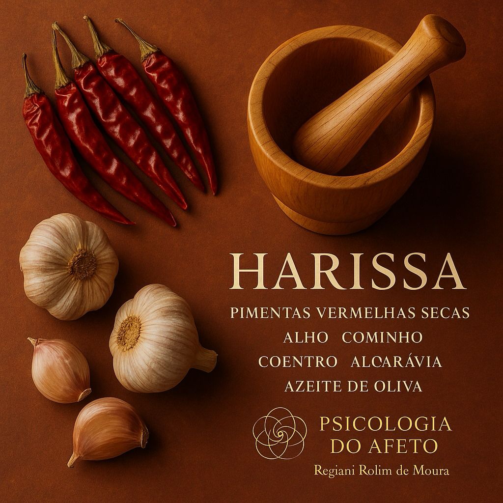 A harissa tem um sabor forte e acolhedor, que nos lembra que é possível nutrir o corpo e o afeto ao mesmo tempo. Você pode ajustar a intensidade da pimenta ao seu paladar, criando uma versão suave ou mais picante — feita com as próprias mãos, com ingredientes que você confia.
