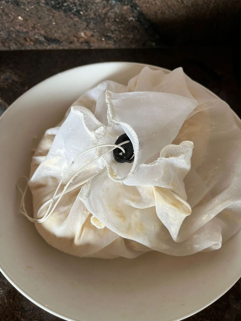 - Feche totalmente o pano e deposite um peso em cima para remover o excesso de soro esse processo pode levar de 30 minutos a 2horas a depender de como você deseja o resultado final;
