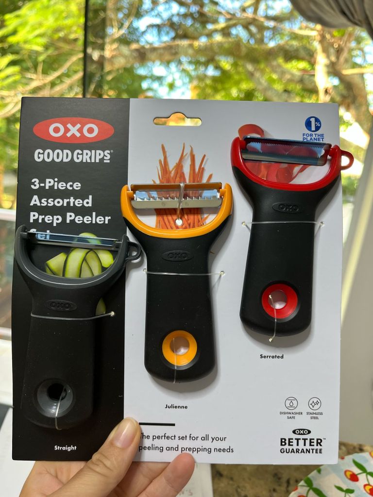 Já tive vários modelos, de descascadores dos mais simples aos mais robustos, mas após muita pesquisa, encontrei estes que são super práticos de usar e fáceis de lavar — perfeitos para fazer espaguete de legumes e outras receitas!