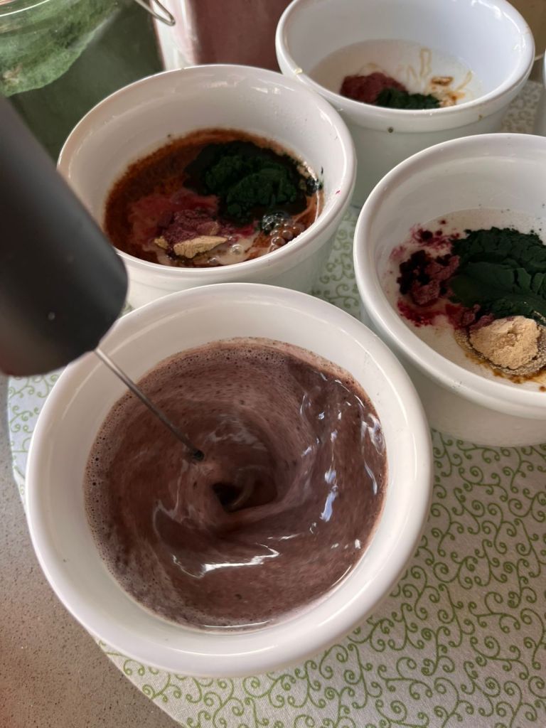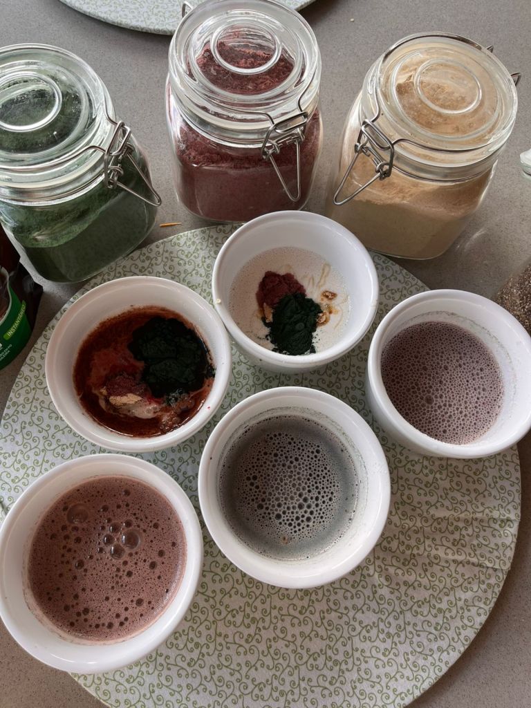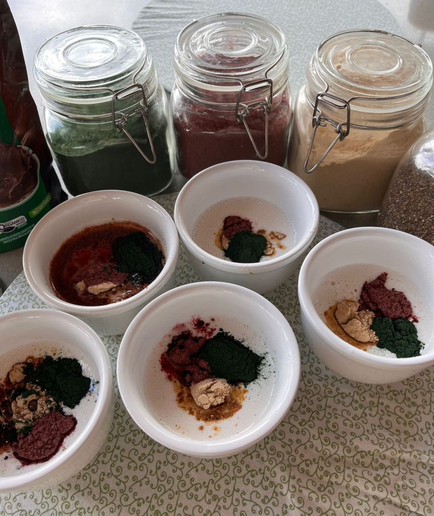 - Adicione a farinha de beterraba ou spirulina, se desejar.