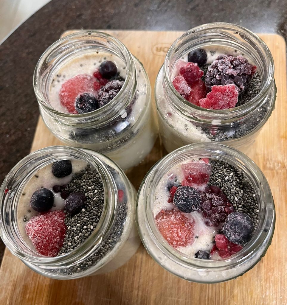 Aquele dia que queremos um lanche rápido, o pudim de chia é perfeito para isso! Em poucos minutos você terá uma refeição super nutritiva e que proporciona muita saciedade, graças às sementes de chia, que absorvem líquido e formam um gel. Além disso, essa refeição contém cerca de 5 a 6 g de fibras por porção (dependendo do leite vegetal e da quantidade de chia usada), ótimas para a saúde digestiva, ajudando a regular o intestino, reduzir picos de glicose e manter a sensação de saciedade por mais tempo. Você ainda pode incrementar com frutas vermelhas, farinha de beterraba ou spirulina, tornando o pudim ainda mais nutritivo e colorido.