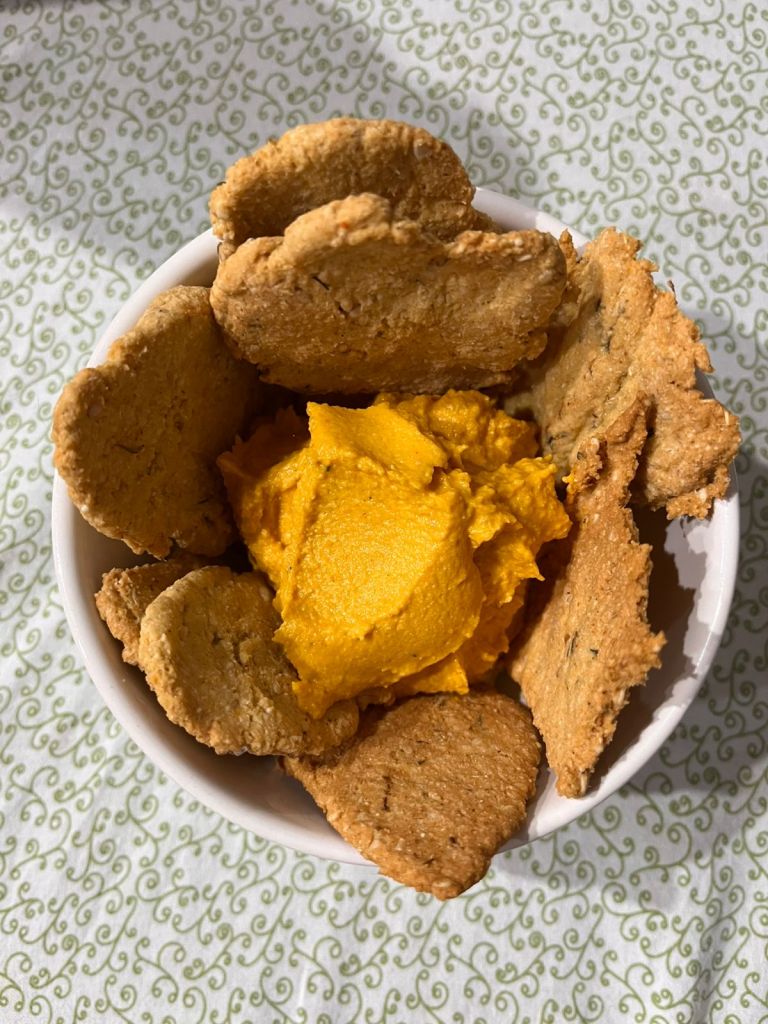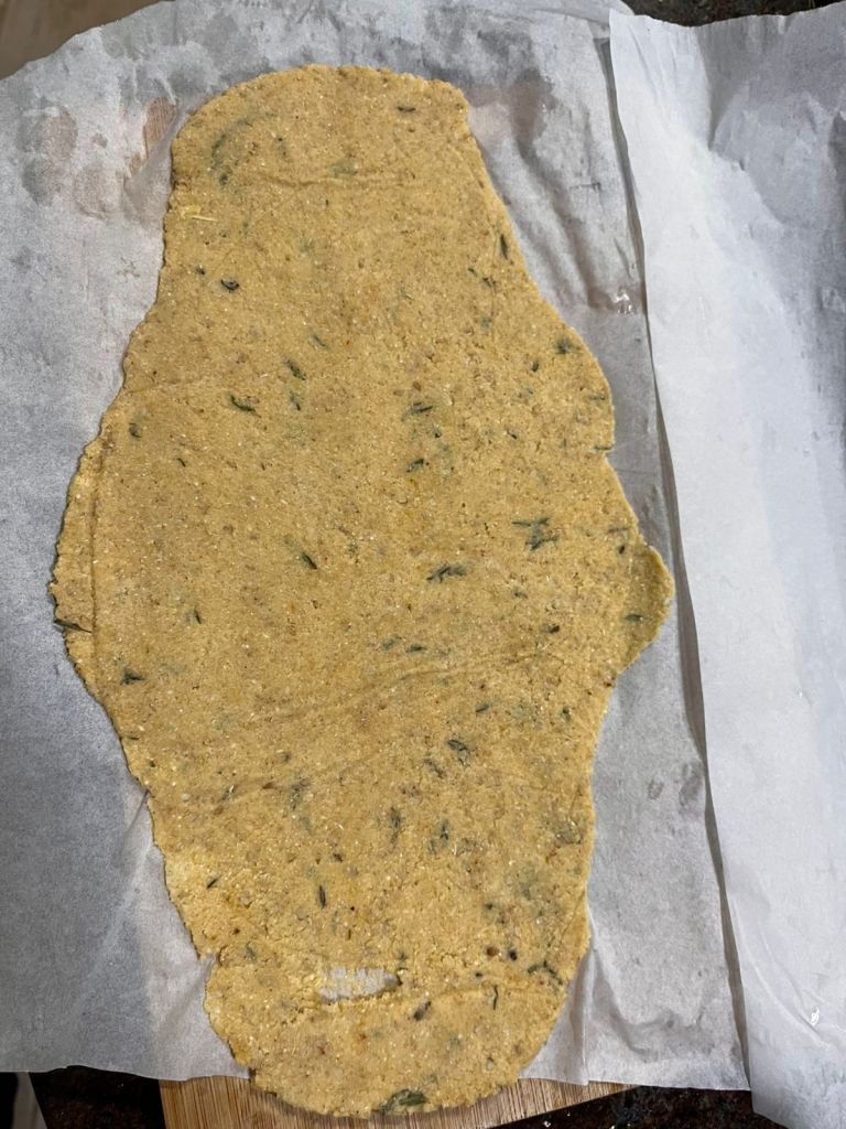 ✨ Resultado: um cracker leve, crocante e rústico, perfeito para servir com tofu, húmus ou molho de cenoura.