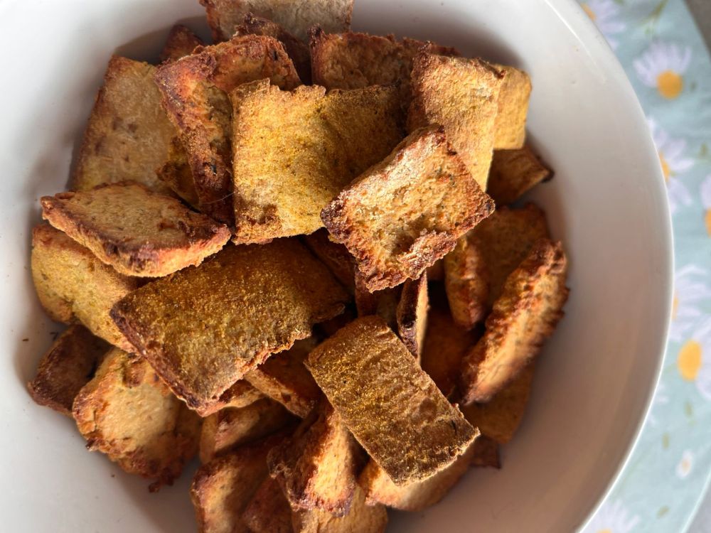 - Sirva como torradinhas para acompanhar frango desfiado, tofu temperado com ervas, patês ou pastinhas.