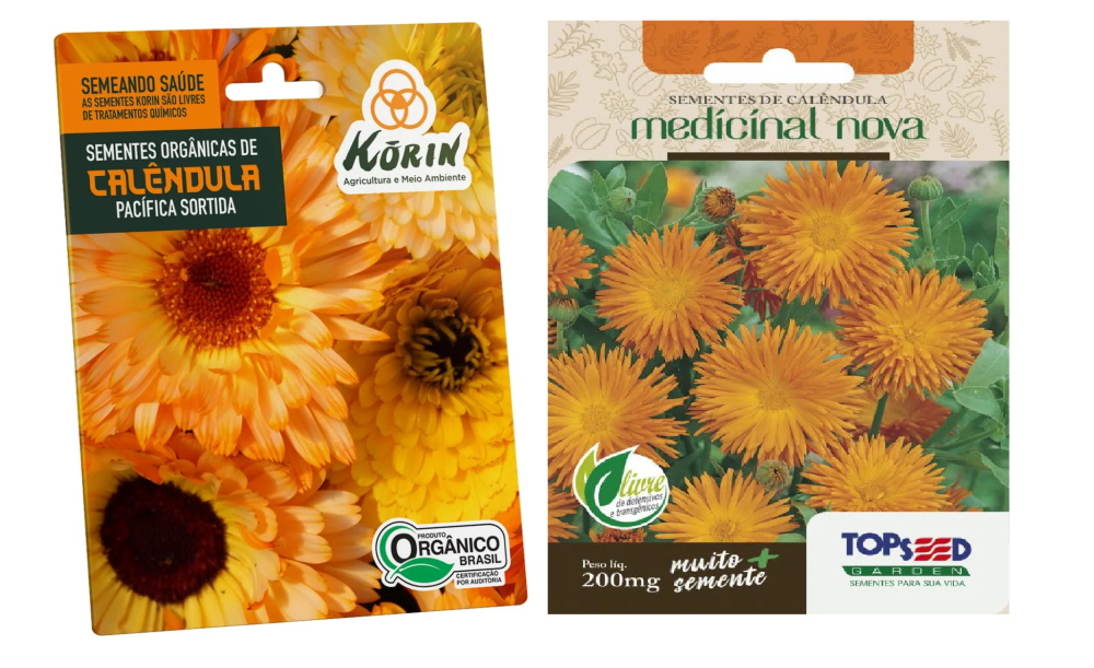 💡 Dica: Calêndulas são resistentes, mas ficam ainda mais fortes quando cultivadas com cuidado desde a semente ou adquiridas orgânicas. Comprei dois tipos de sementes orgânicas no site do plantei, você pode encontrar muitas espécies orgânicas aqui: https://www.plantei.com.br/loja/busca.php?loja=350075&palavra_busca=calendulas