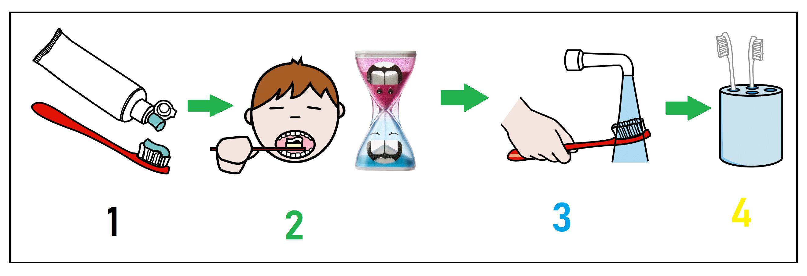 - Use ampulhetas coloridas para marcar o tempo de escovação (como esta aqui);