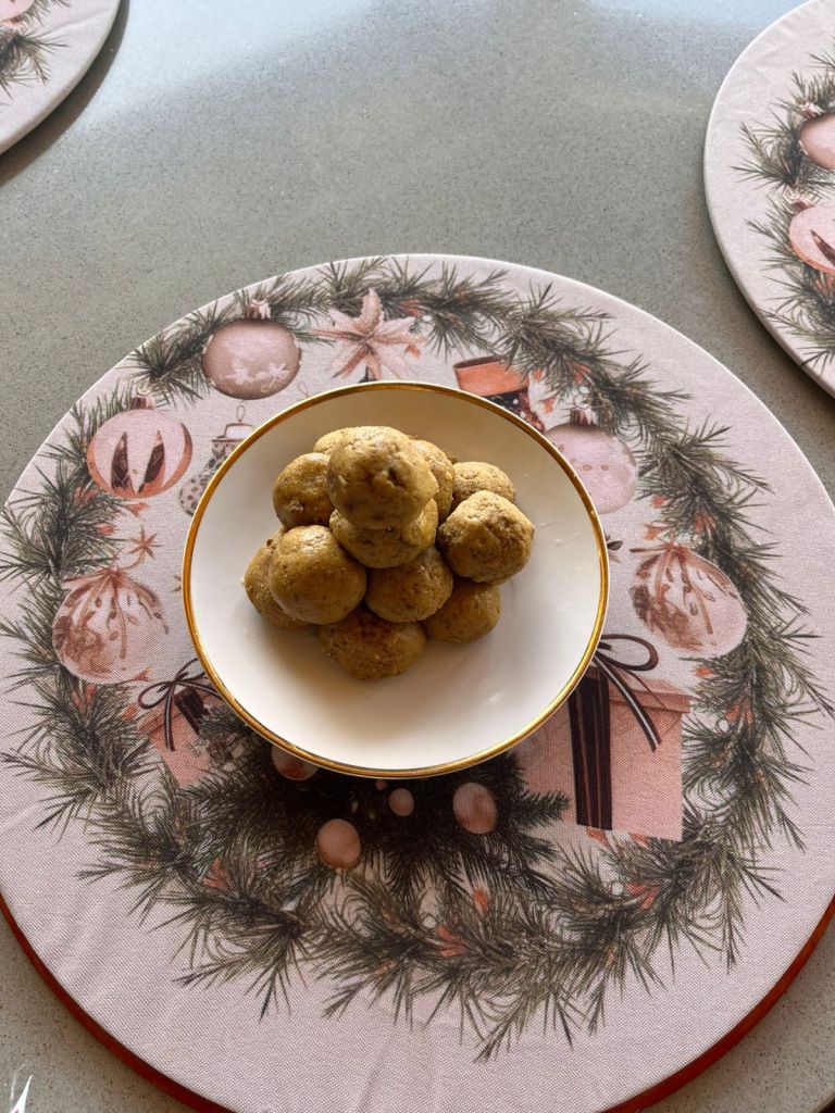 Estava pensando em algum doce que fosse saboroso, rápido de fazer e livre de ultraprocessados, algo que eu mesma pudesse preparar em casa com ingredientes simples e nutritivos. E, para minha surpresa, esse doce existe — e fica muito saboroso! Cheguei até essa receita através do livro “Longevidade”, da Laura Pires, e resolvi testar por curiosidade. Gostei tanto que ela imediatamente se tornou a minha receita de doce perfeita: acolhedora, aromática, feita com ingredientes que nutrem o corpo e fazem bem. É impressionante como algo tão simples pode trazer tanto sabor, energia e afetividade. Foi assim que descobri o ladoo indiano — uma receita milenar, cheia de história, tradição e simbologia, que hoje compartilho aqui com carinho.