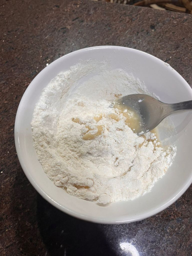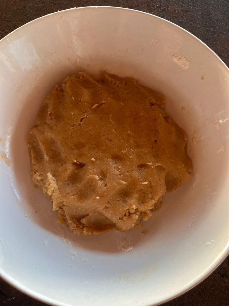 - Misture com as mãos até formar uma massa firme.