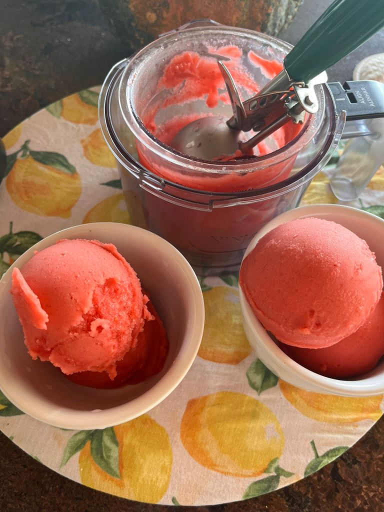 Quando decidimos mudar alguns hábitos em relação à alimentação, percebemos que as opções de sorvete começaram a diminuir. Apesar de morarmos relativamente perto de uma sorveteria que oferece sorvetes à base de água, não era exatamente o que buscávamos. Além disso, convenhamos: no verão, sair de casa, enfrentar fila grande e depender do horário nem sempre é prático quando a vontade por um doce aparece. Há também quem não goste tanto de sorvete ou ache uma sobremesa simples demais. No meu caso, ainda existe um detalhe curioso: tenho hipersensibilidade ao frio e, às vezes, acabo sentindo o famoso “cérebro congelado” 😅. Com o tempo, entendi por que meu marido consegue comer muito sorvete sem incômodo — ele não tem essa sensibilidade, então aproveita sem restrições.