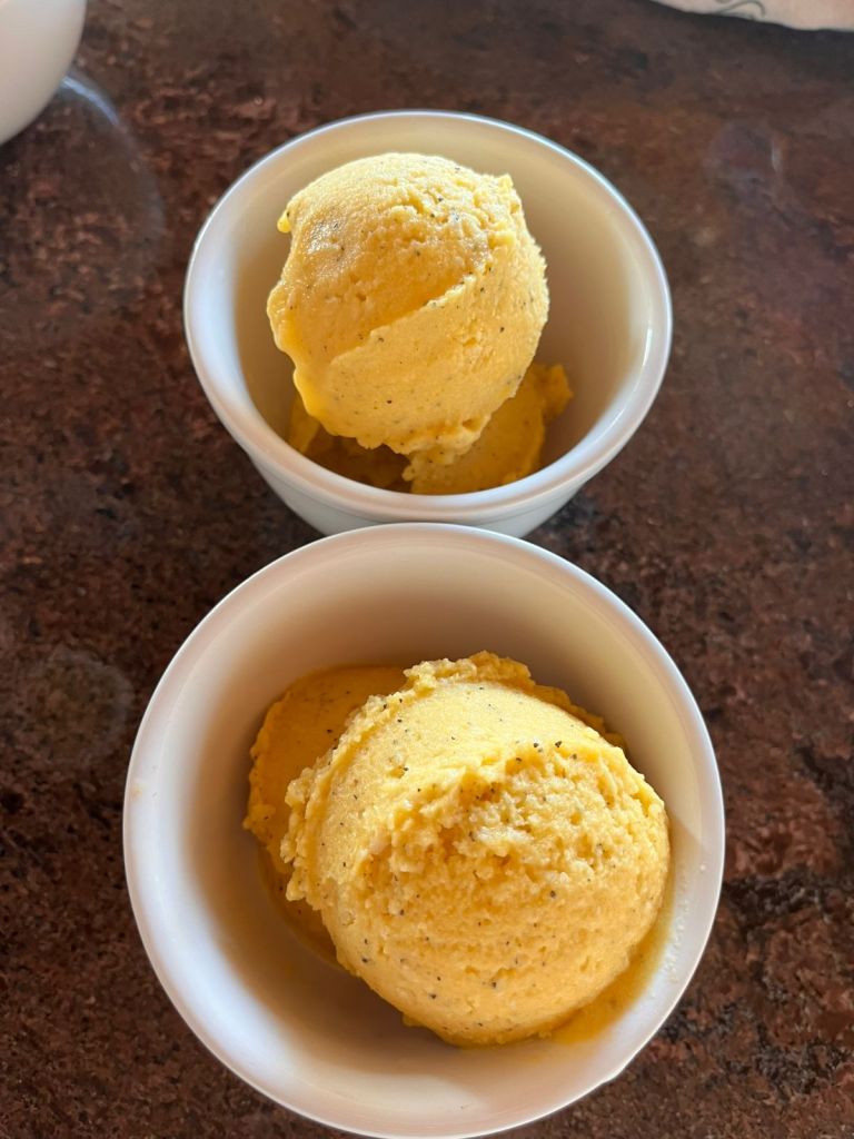 Se não usar nenhum desses, o sorvete fica mais leve, mais próximo de um sorbet cremoso.