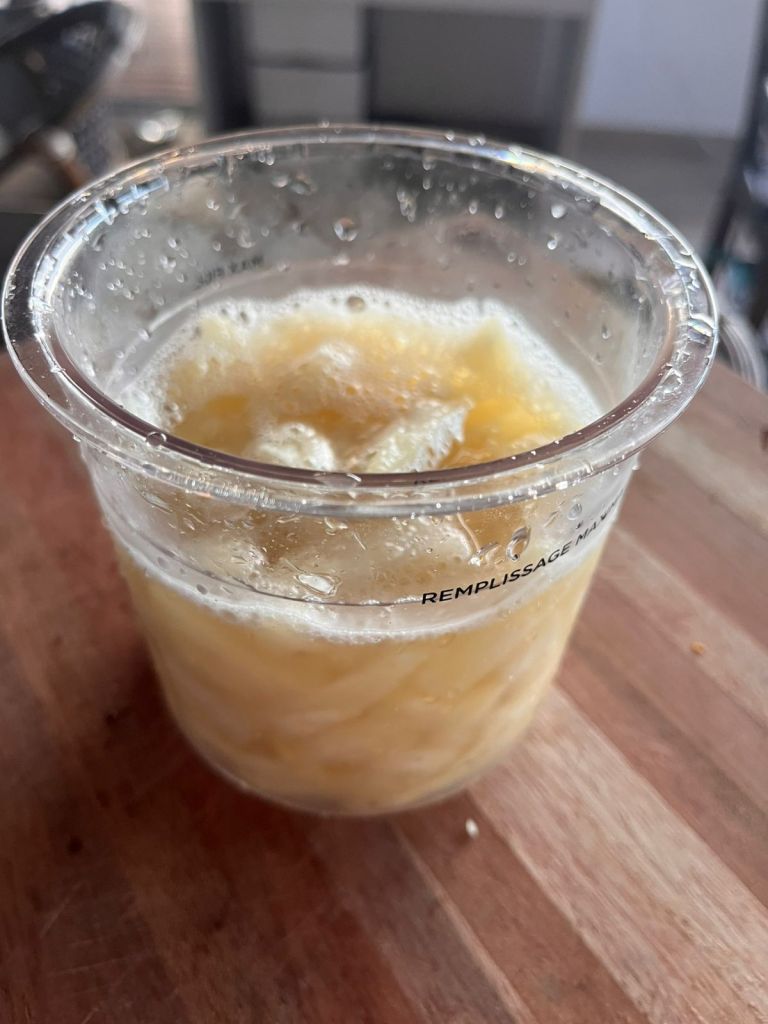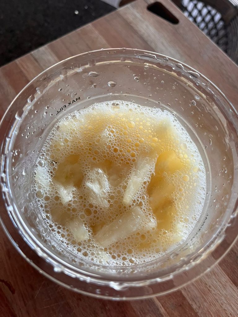- 1 manga grande madura (cubos) cerca de 200 gramas