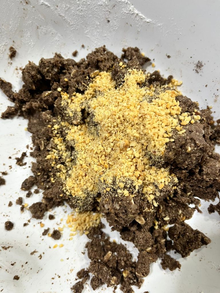 - Um pouco de farinha de amendoim (para crocância)
