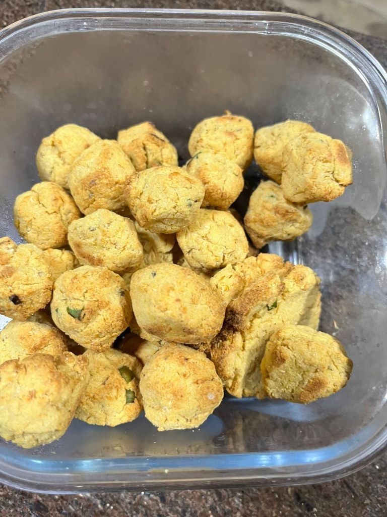 🌽 Okara crocante: bolinhos ou mini-hambúrgueres
