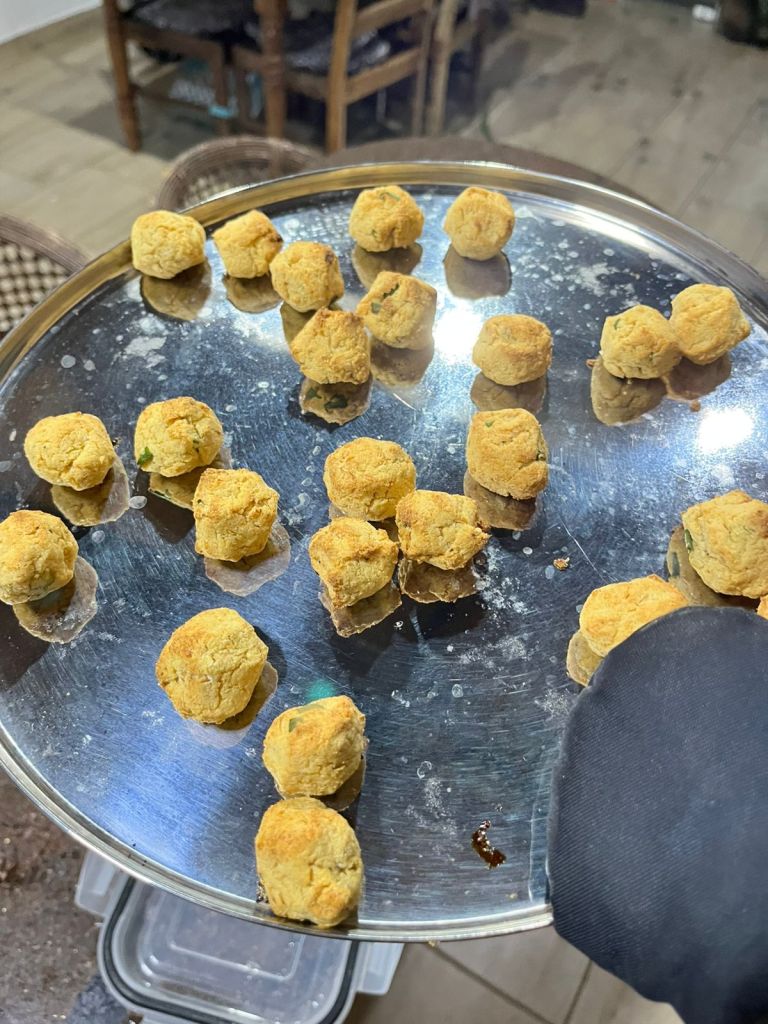 - Farinha de grão-de-bico até dar liga