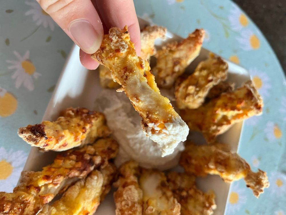 👉 Isso ajuda a deixar o empanado mais leve e crocante.